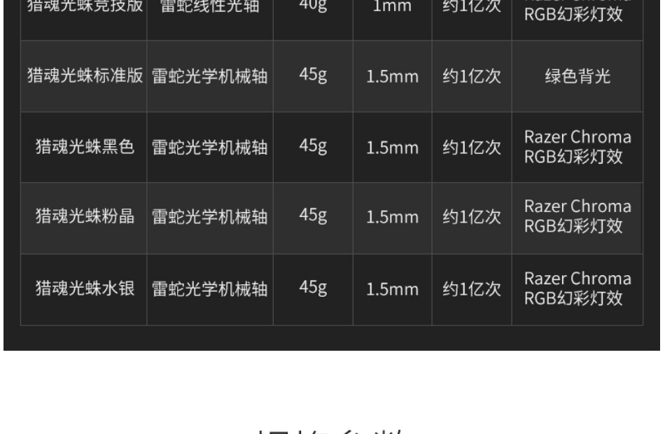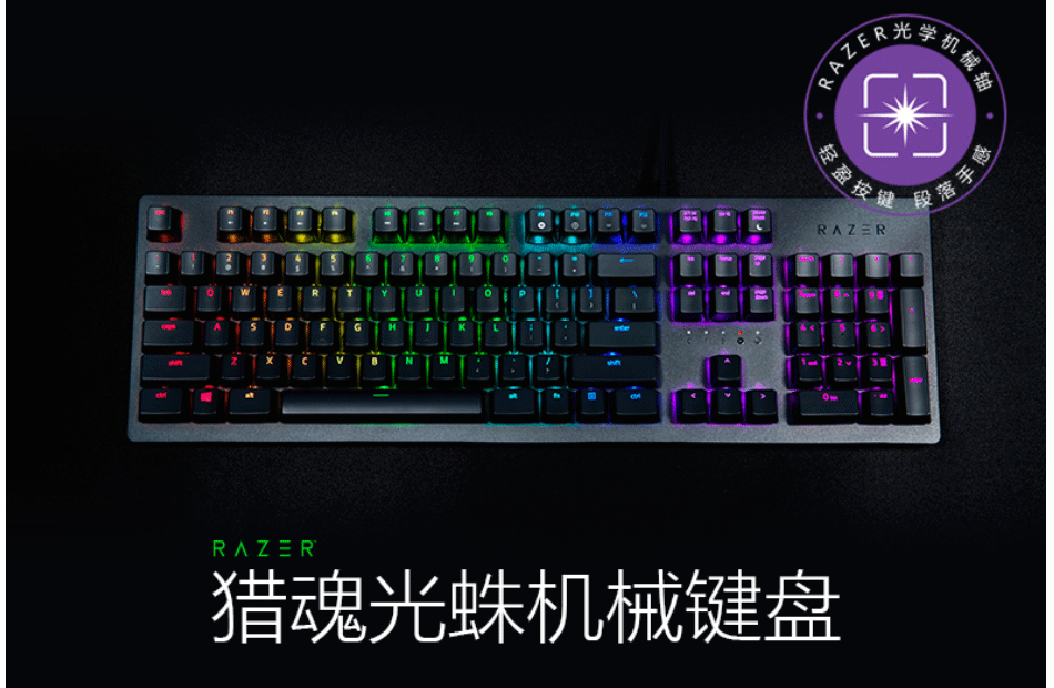 雷蛇 猎魂光蛛RGB版 104键 黑色 游戏键盘
