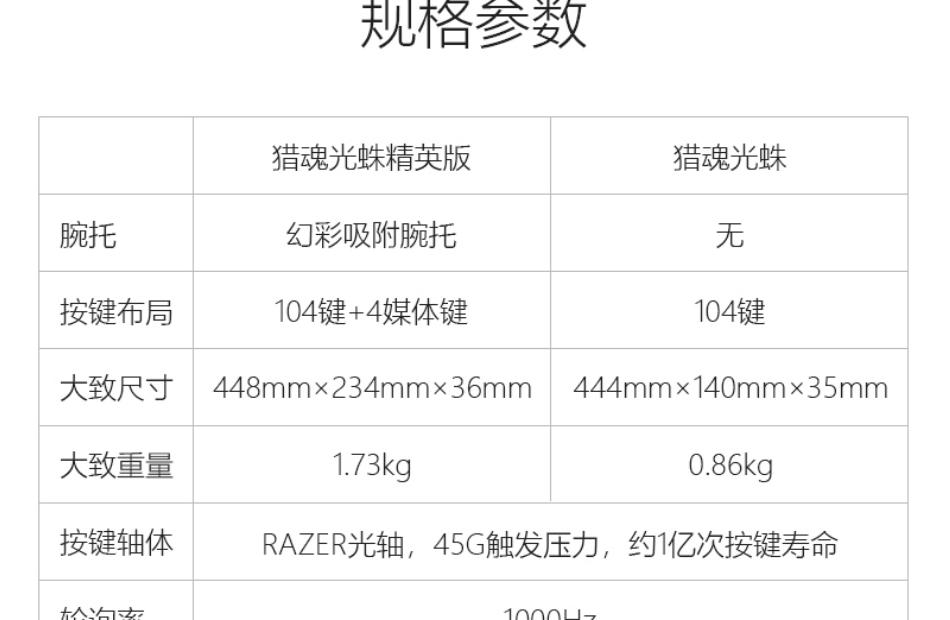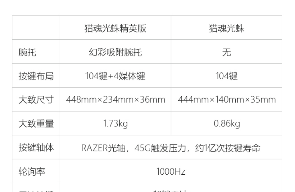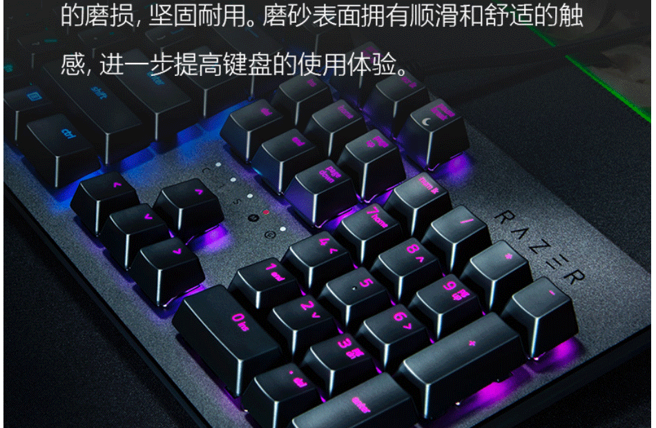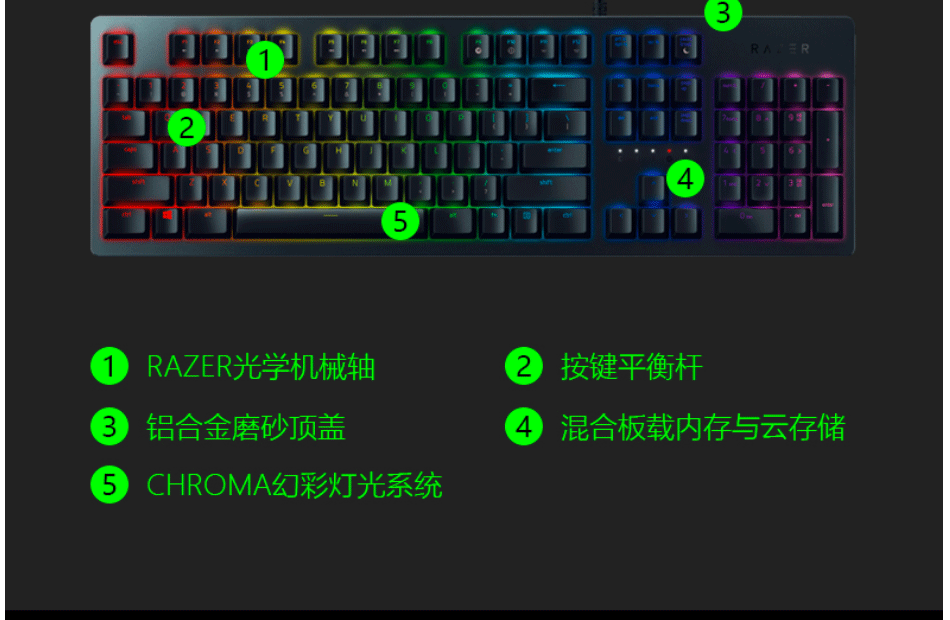 有线机械键盘,RAZER光学机械轴,多功能数字按键,人体工程学腕托,持久舒适