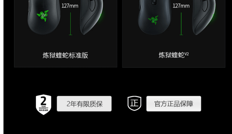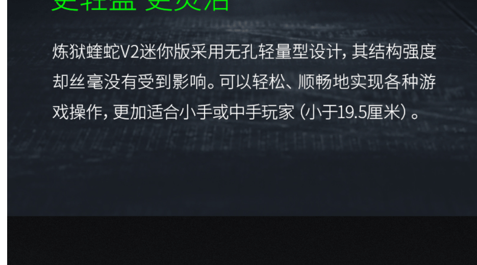 | 包装清单 | 雷蛇炼狱蝰蛇V2迷你版*1,重要产品信息指南*1 |