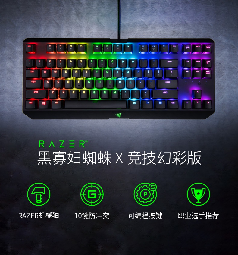 雷蛇 黑寡妇蜘蛛X竞技幻彩 黑色 游戏键盘