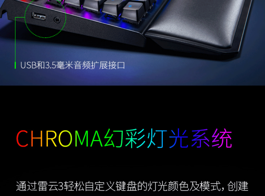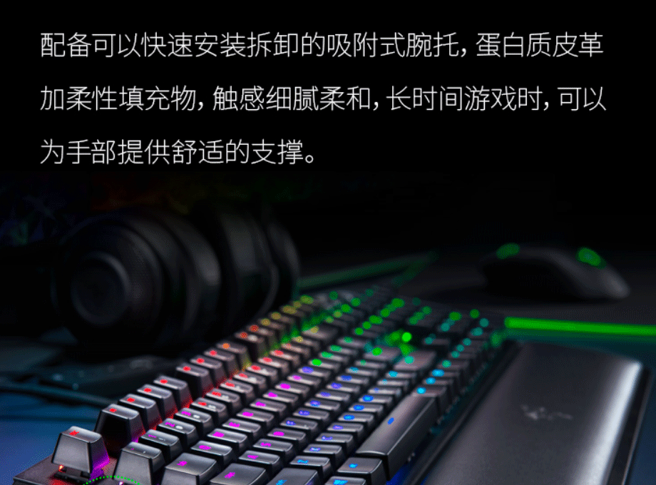 RAZER光学机械轴,多功能数字按键,人体工程学腕托,持久舒适