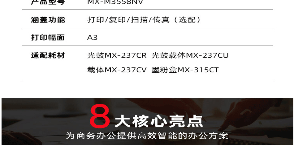 | 型号 | MX-M3558NV 黑白数码复印机 |