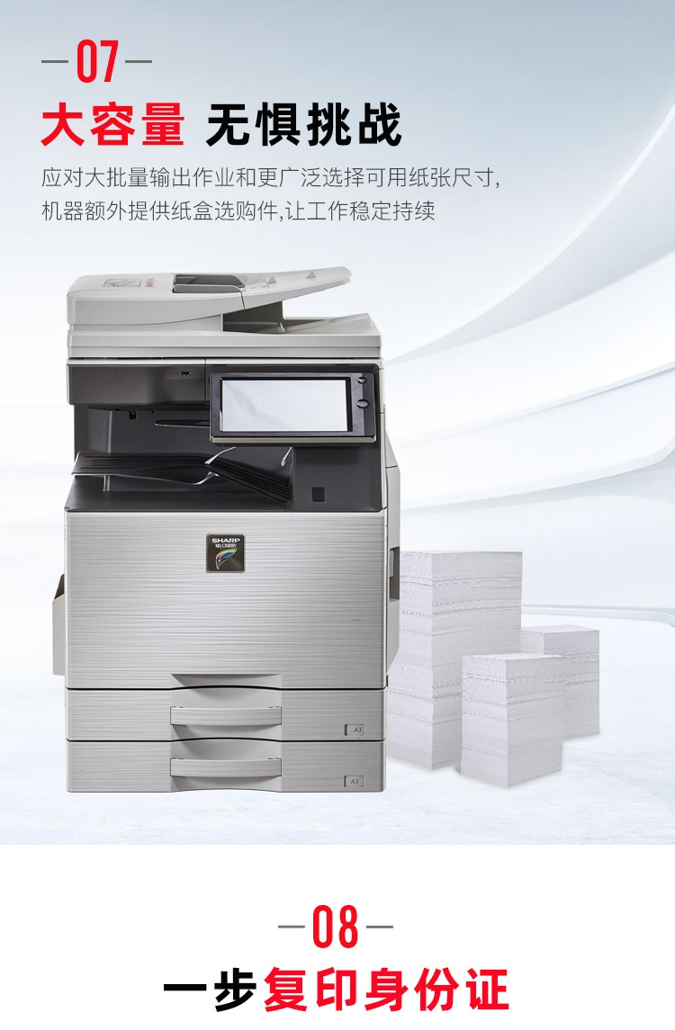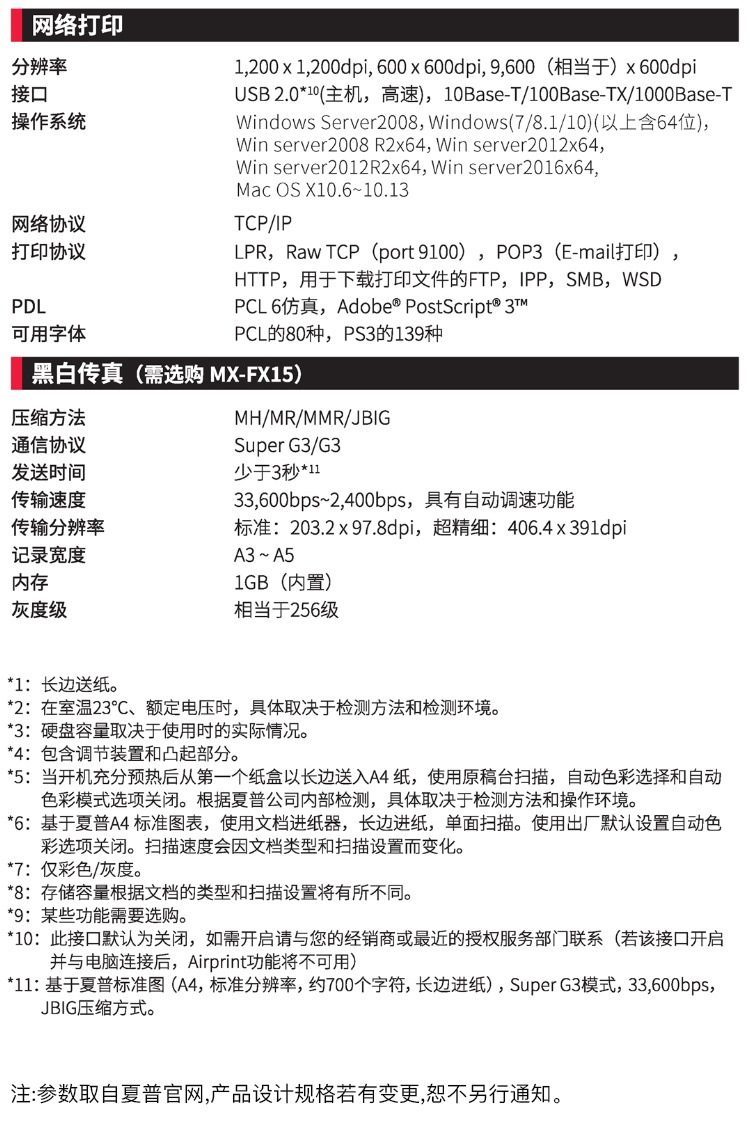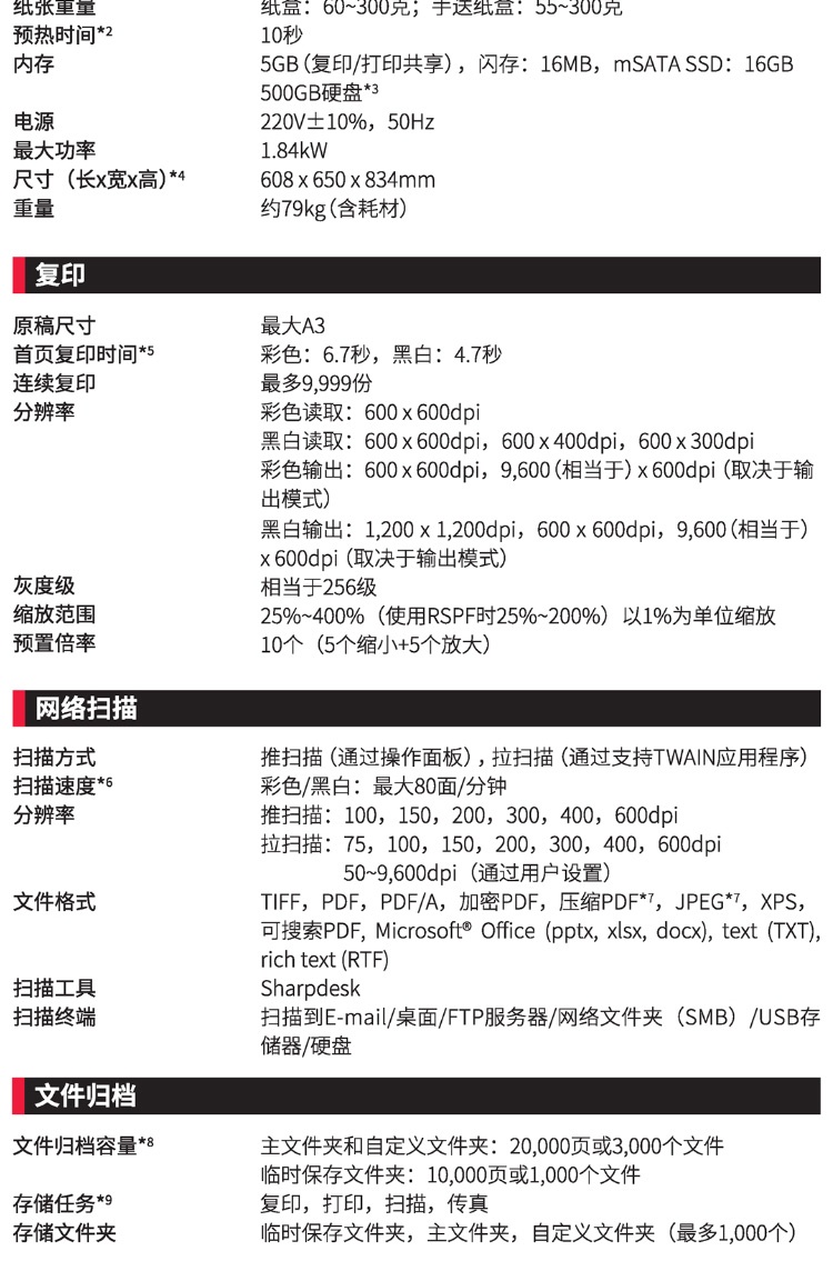 | 标配内存 | 5GB(复印/打印共享),闪存:16MB,mSATASSD:16GB,500GB硬盘×3 |