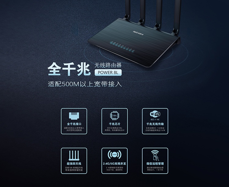 墙 光纤宽带支持微信管理路由器 Power8L智能路由