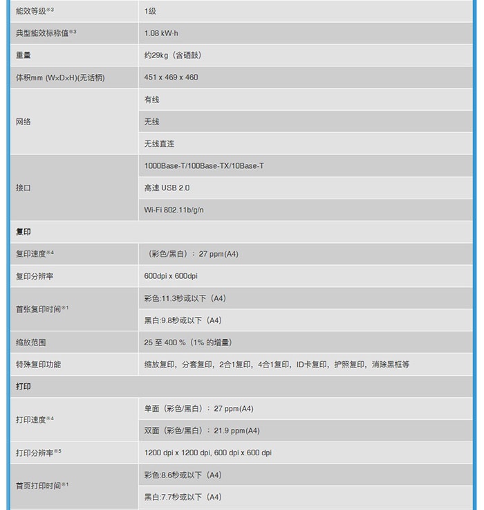 | 功能 | 打印;复印;扫描;其他 |