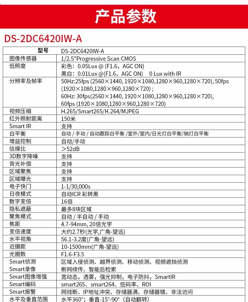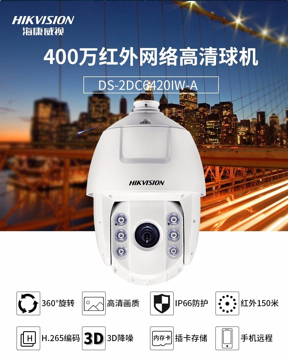 海康威视 DS-2DC6420IW-A 400万高清变倍变焦星光球机