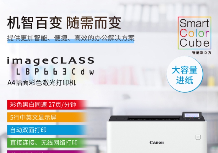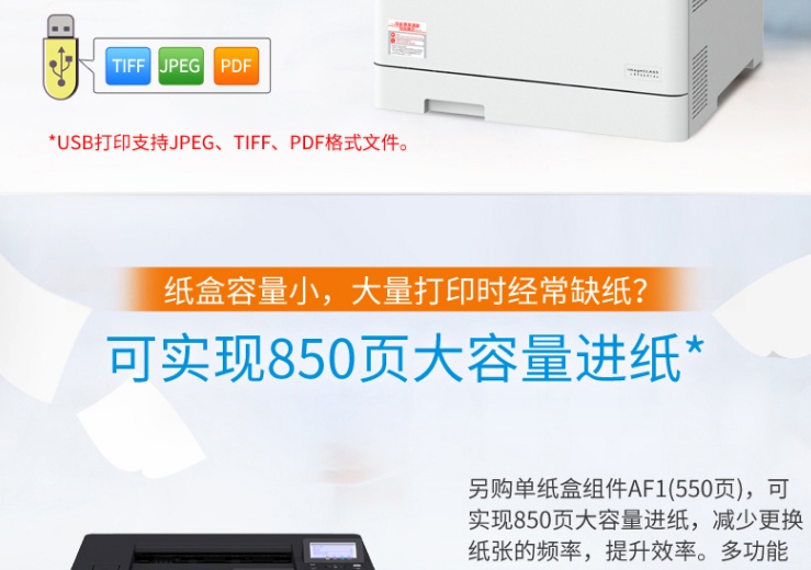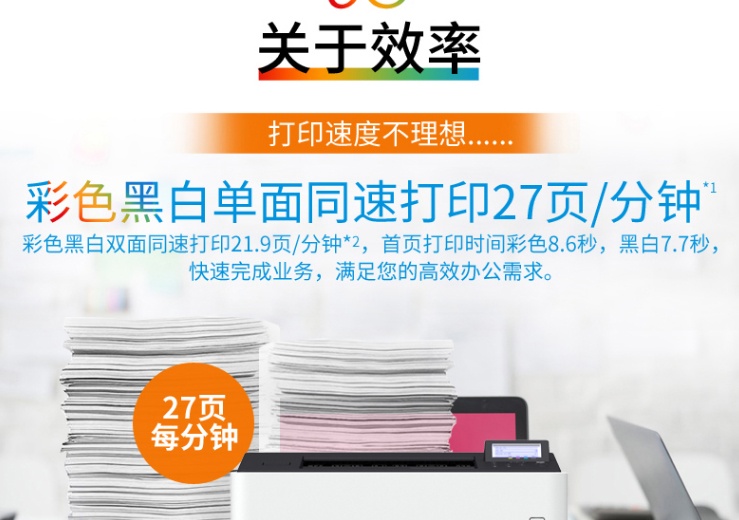 彩色激光打印机,黑白27ppm,彩色22ppm,鼓粉分离,双面打印,支持有线/无线网络打印