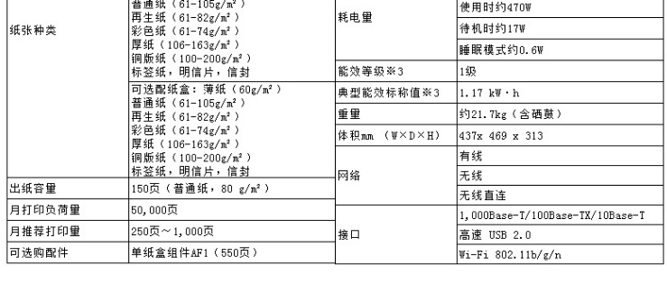 | 连接方式 | 有线;无线;USB;移动APP打印 |