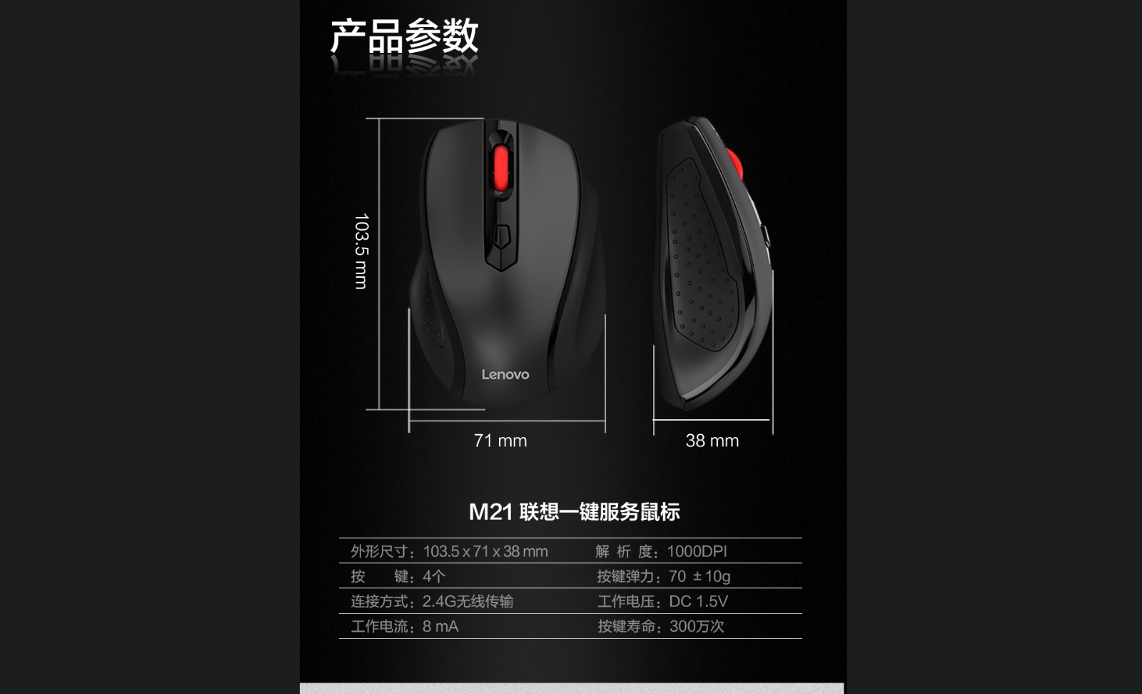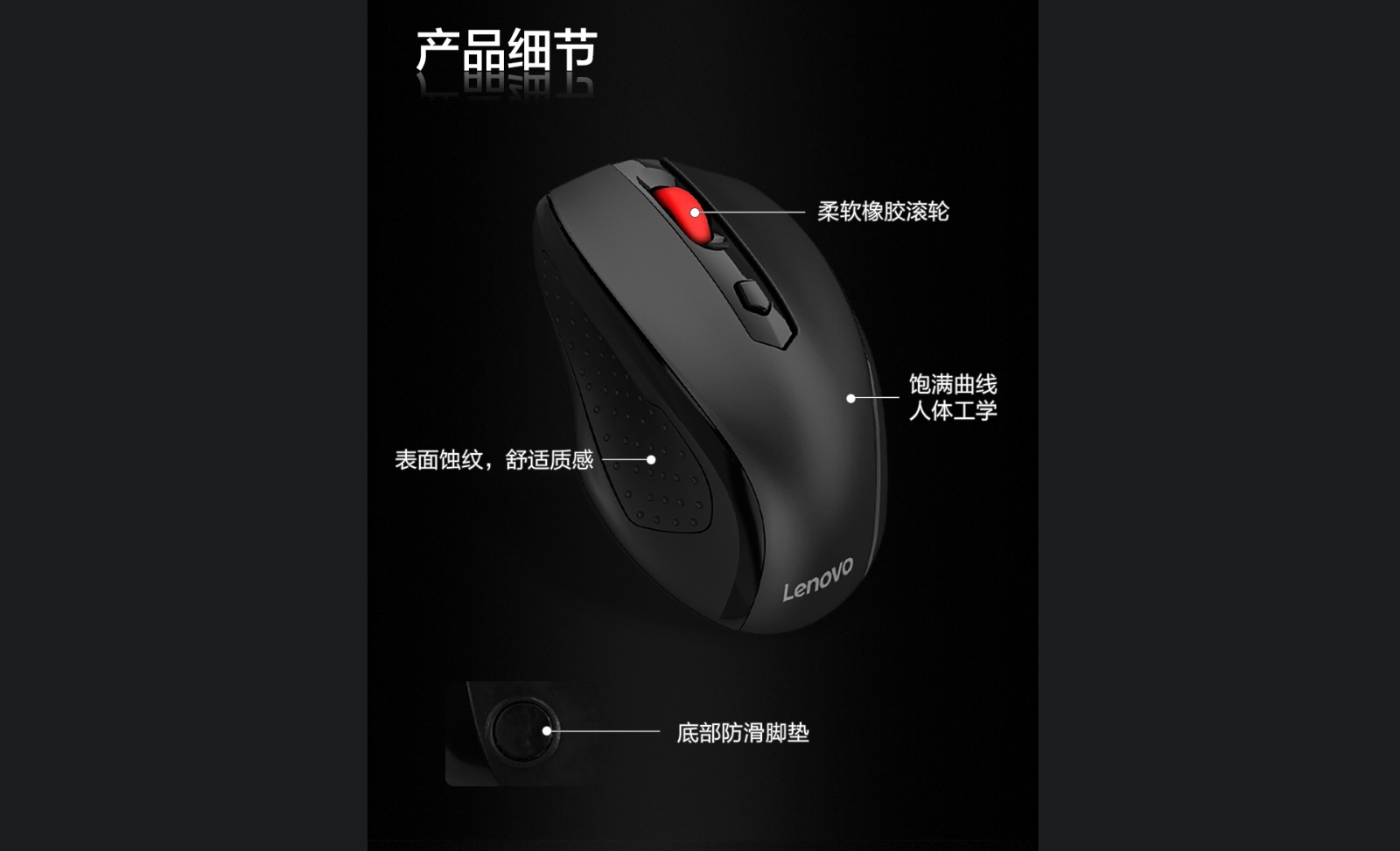 联想原厂无线鼠标,人体工学,舒适手感,1000DPI光学引擎,一键呼叫工程师服务
