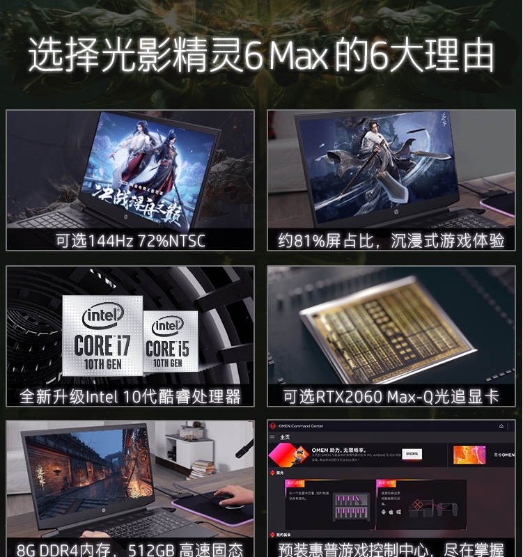 惠普 光影精灵6 Max Pav 16-A0072TX白(i5-10200H/16G/1650Ti/512SSD/60Hz 72%/白)惠普笔记本