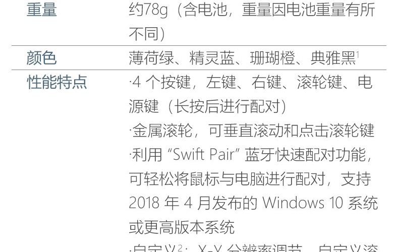 | 包装清单 | 鼠标 X 1 电池 X 1 说明书 X 1 |