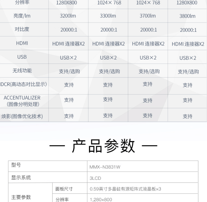 麦克赛尔(maxell) MMX-N3831W (3800流明/1280*800) 投影机