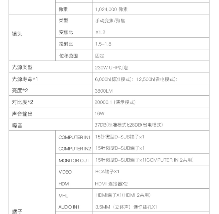 | 安装方式 | 桌上正投;吊装正投;吊装背投;桌上背投;360度投影 |