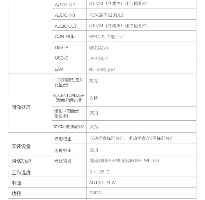 | 无线同屏支持设备 | 手机、电脑、平板(需配无线适配器) |