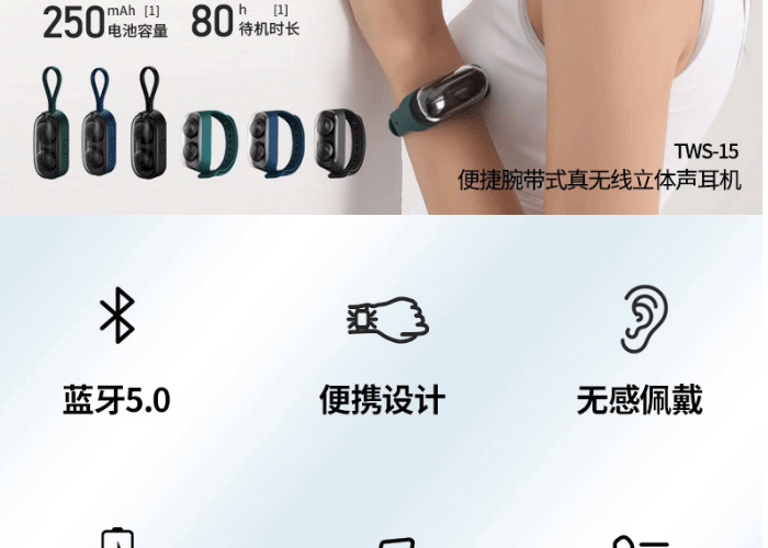 REMAX睿量 TWS-15 便携腕带式无线耳机
