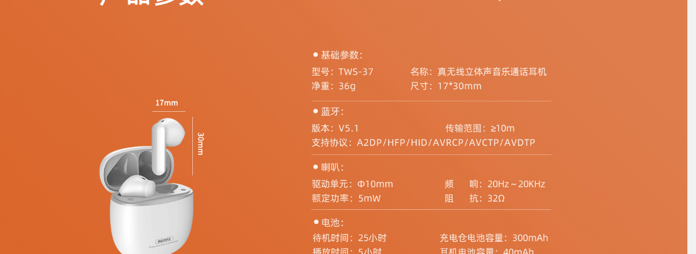 REMAX睿量 TWS-37 真无线立体声耳机 黑色