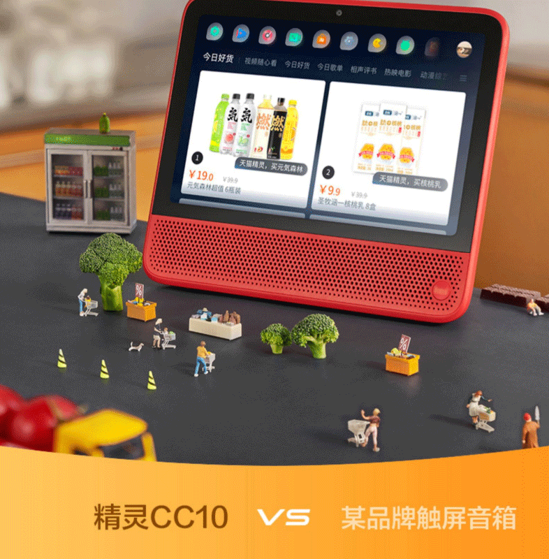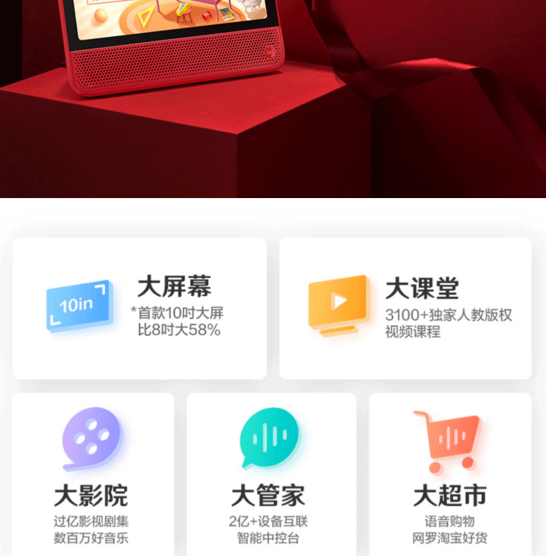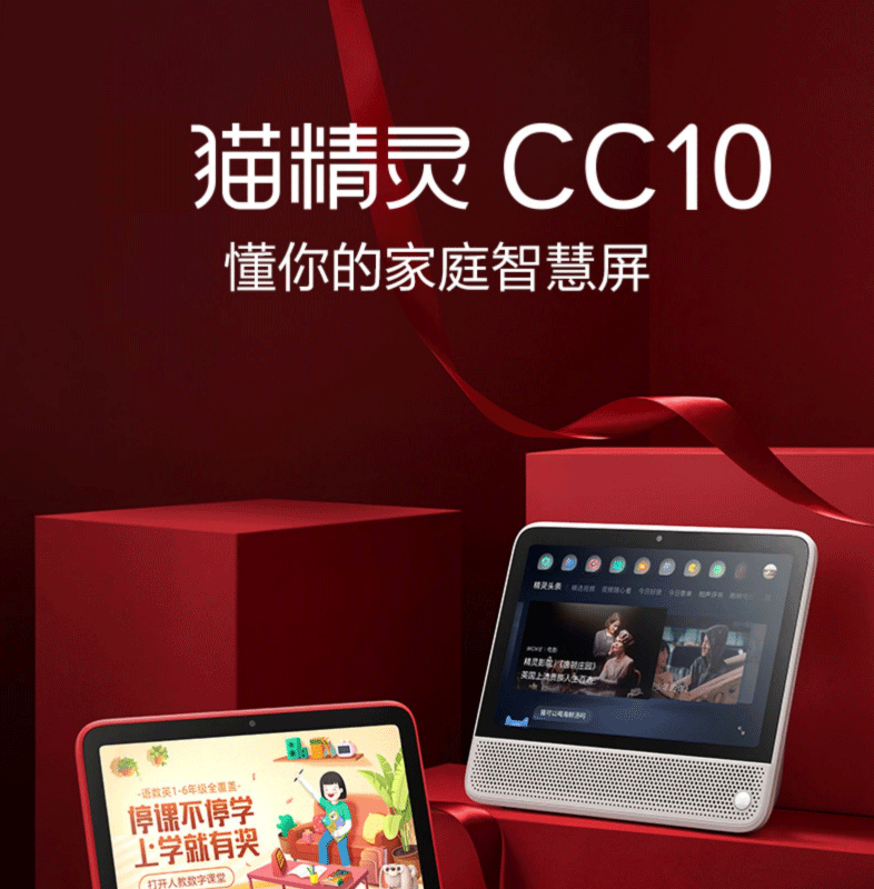 天猫精灵CC10电池版 10寸平板电脑家居音响儿童学习机(红色)