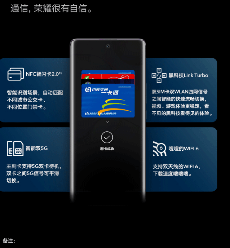 NFC | 支持NFC:读卡器模式, 点对点模式, 卡模拟模式(钱包支付,SIM卡支付,HCE支付)SIM卡支付所使用的SIM卡只能放在SIM1卡槽) |