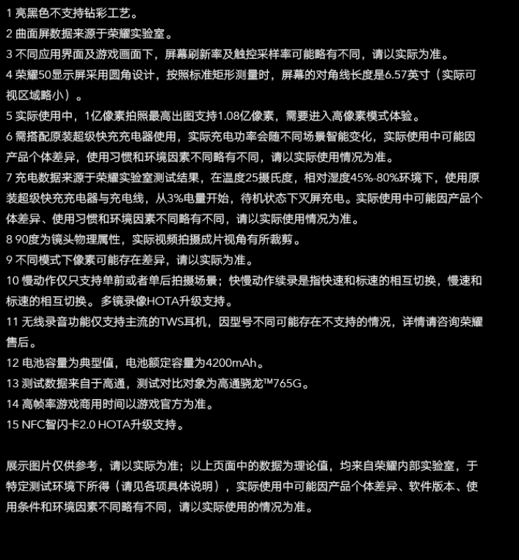 包装清单 | 手机(含内置电池) x1 SuperCharge充电器 x1 Type-C 数据线 x1 TPU保护壳 x1 快速指南 x1 取卡针 x1 三包凭证 x1 Type-C转3.5mm 耳机转接线 x1 |