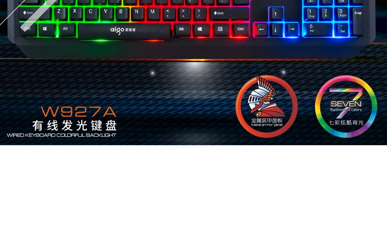爱国者 W927A 有线发光键盘加重办公游戏通用USB金属键盘