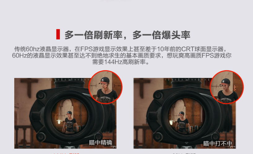 无边框 144hz刷新率 MPRT 1ms极速响应 IPS屏 NTST 85%高色域 不闪屏+滤蓝光 Free-sync技术(兼容G-sync)五金底座