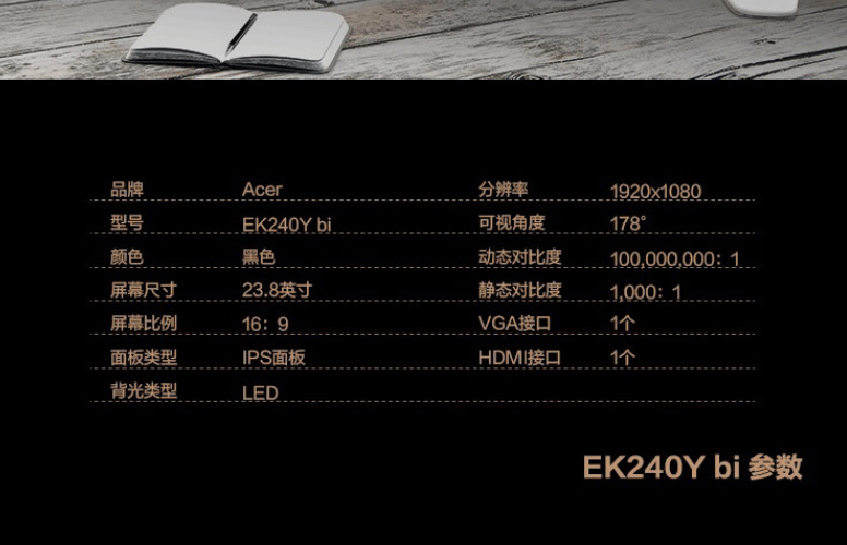 Acer/宏碁 EH240Y 23.8英寸宏基液晶显示器办公家用电脑屏监控行货