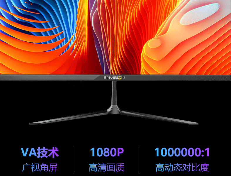 21.5英寸高清屏,75hz刷新率,三边微窄边框,纤薄外观,支持壁挂