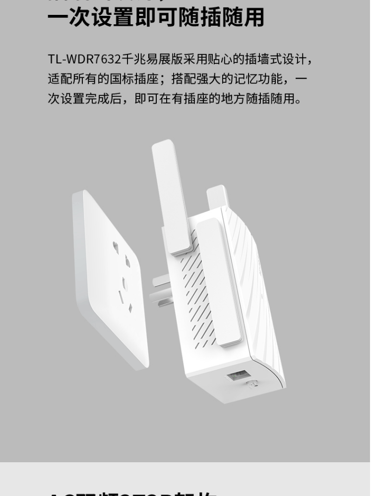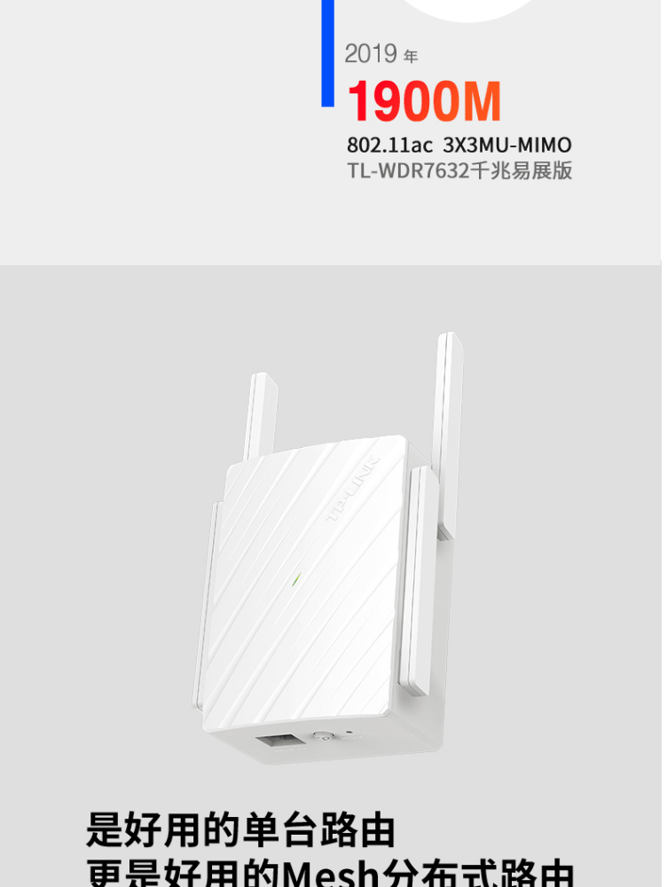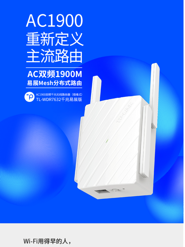 TP-LINK TL-WDR7632千兆易展版 1900M双频插墙式迷你无线路由器