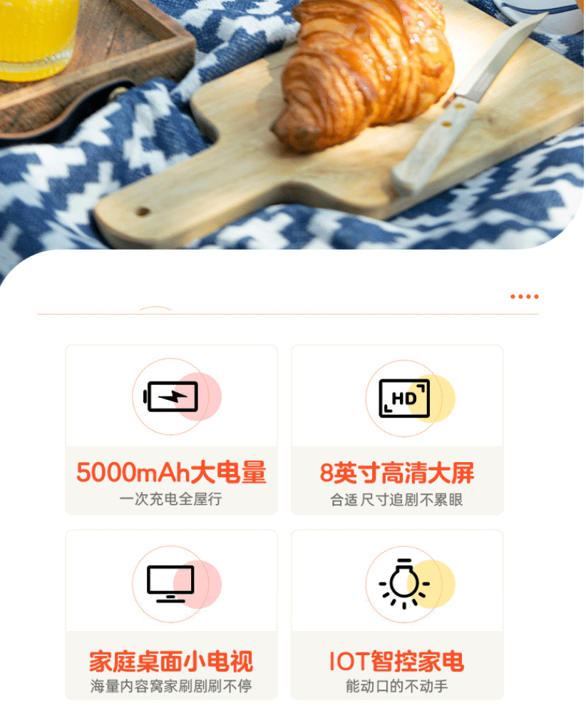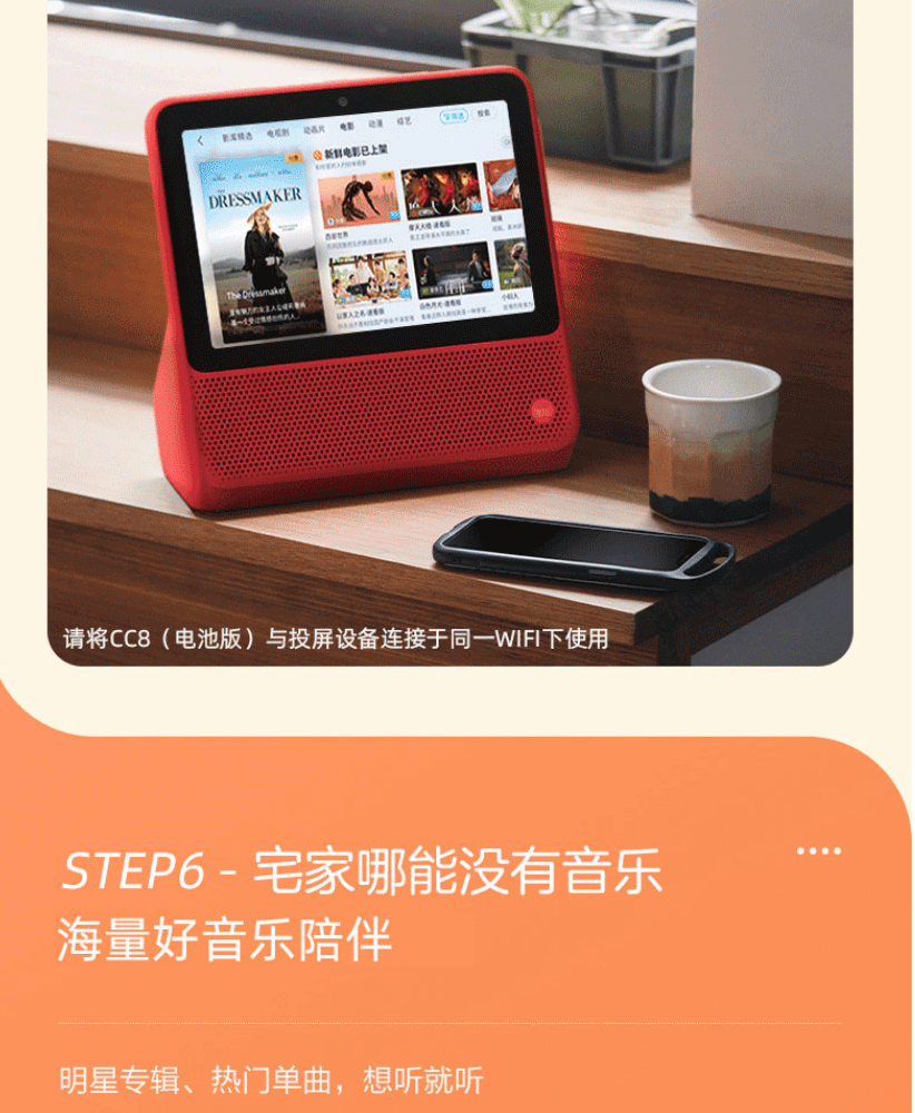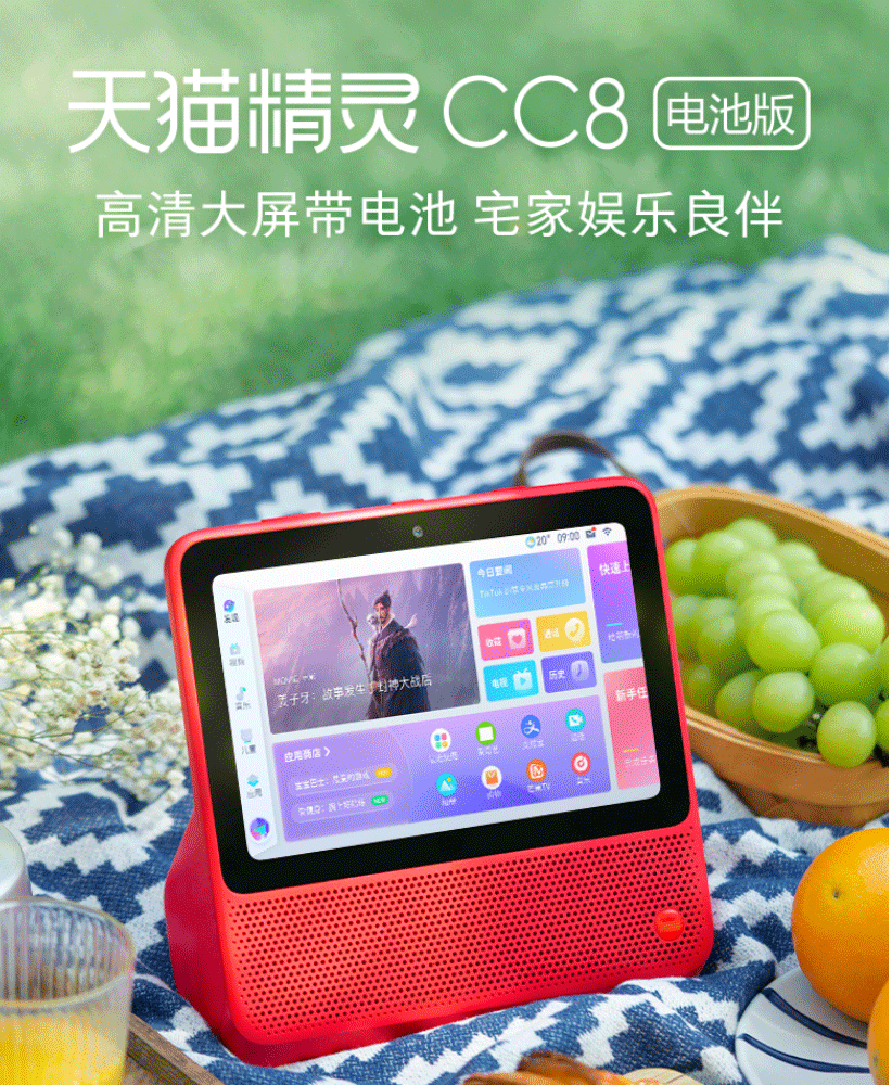 天猫精灵 CC8 电池版 智能屏8英寸学习机平板智能音箱 新月白