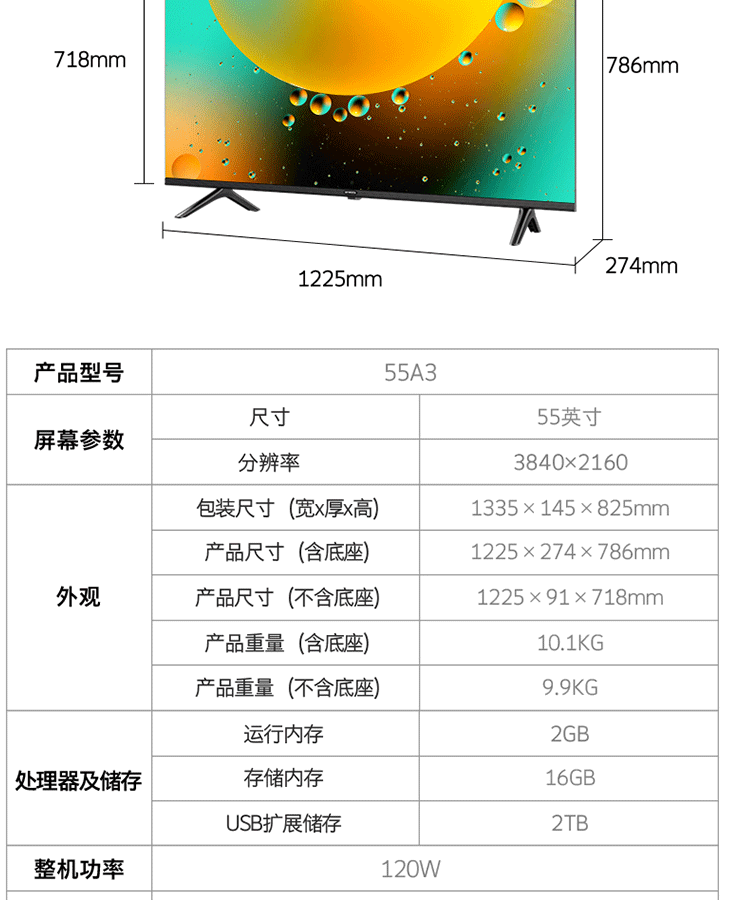| 屏幕尺寸 | 65英寸 |