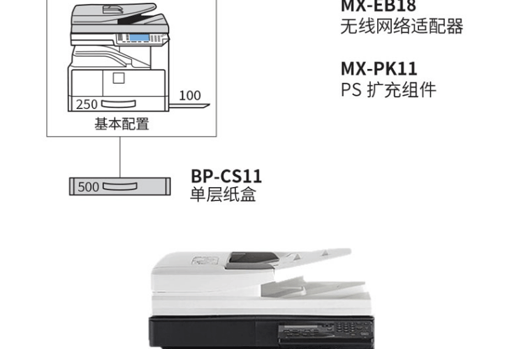 夏普 BP-M2522R 复印机 带输稿器 无线网络 双面打印 单纸盒