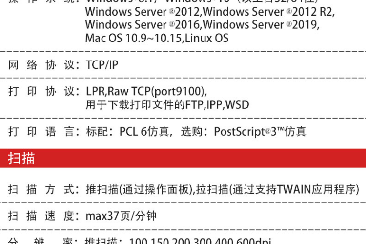 | 扫描速度 | 最大37页/每分钟 |