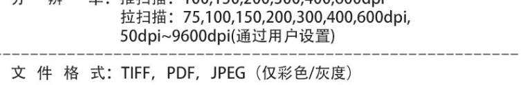 | 扫描文件格式 | TIFF,PDF,JPEG |