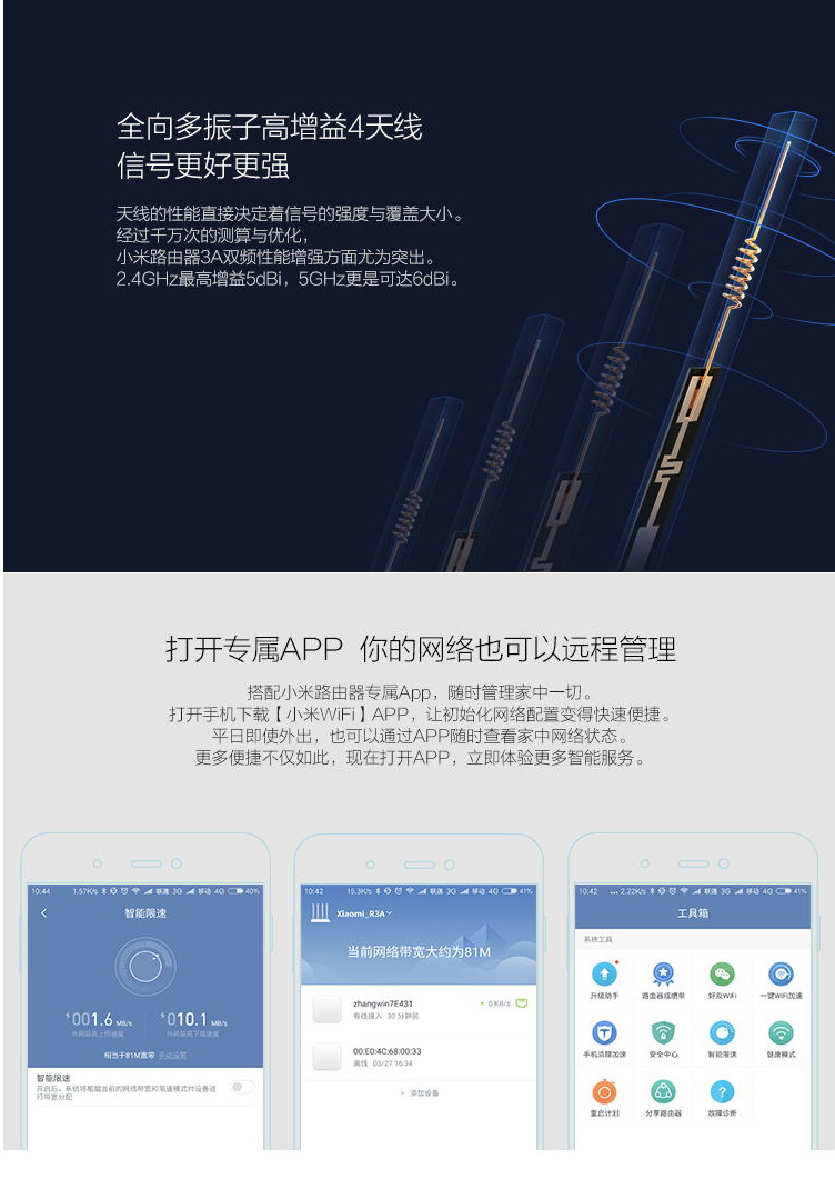 | 天线增益 | 2.4G最大增益5dBi 2根;5G最大增益6dBi 2根 |