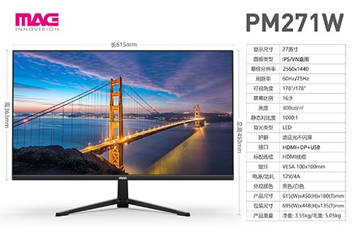 美格 27寸 PM271W 2K 黑色 液晶显示器