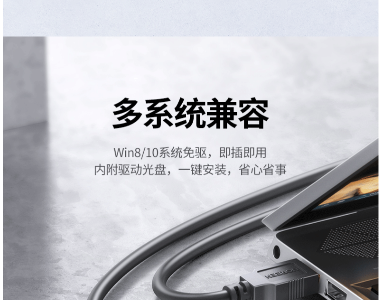 镀金接口传输稳定,双层屏蔽抗干扰,多系统兼容,可热插拔