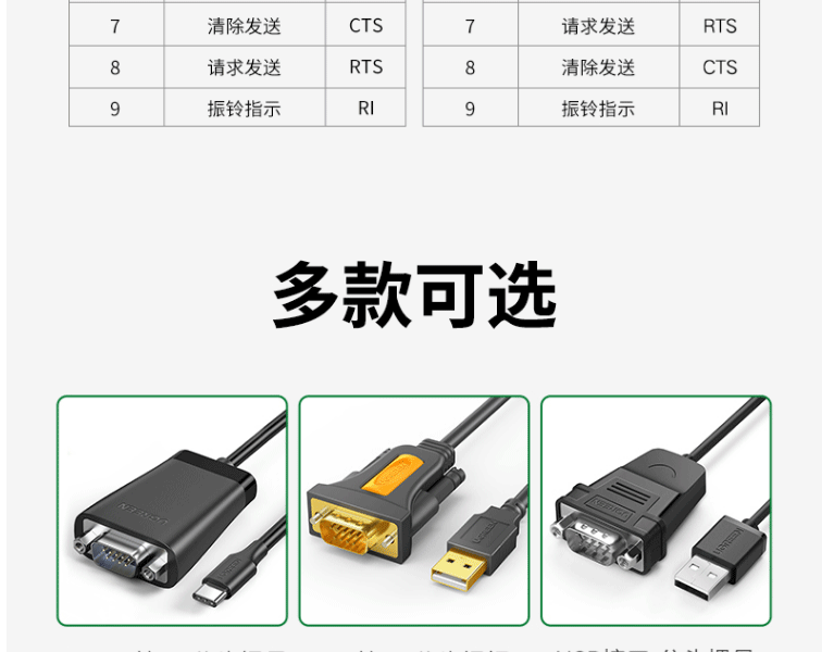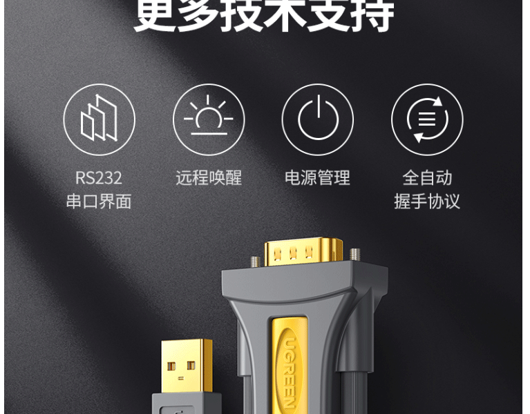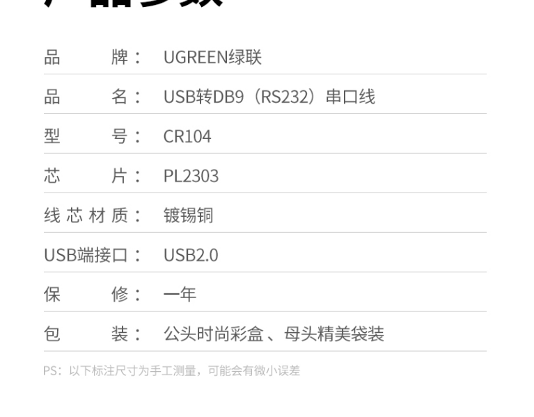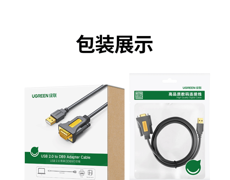 绿联 CR104 USB转串口DB9 RS-232公对公线 1.5米 20211