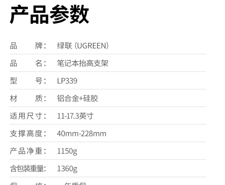 绿联 LP339 笔记本抬高支架 深空灰 40291