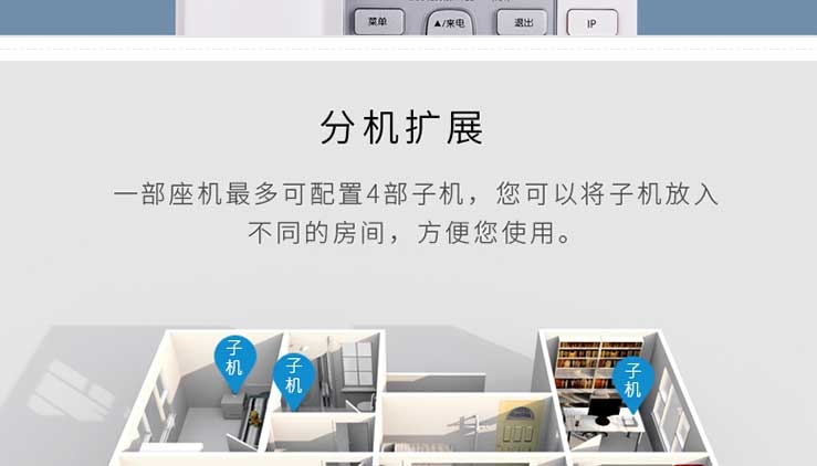 大屏幕数字电话子母机 超距离子机报警办公家用固定电话 来电显示无绳电话 停电座机可用
