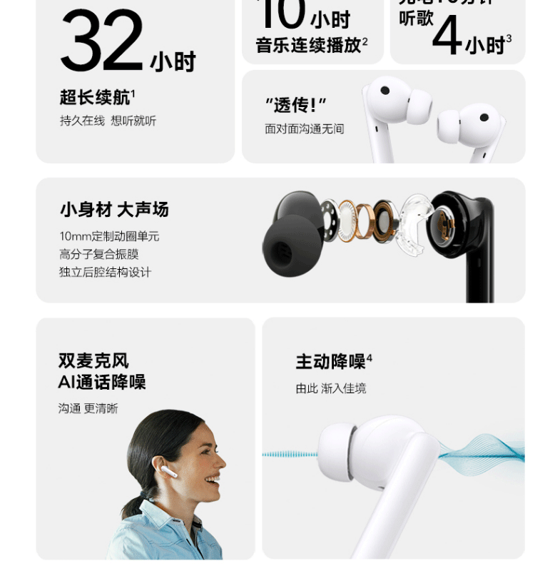 荣耀 Earbuds 2 SE 音乐运动主动降噪无线蓝牙耳机 冰岛白