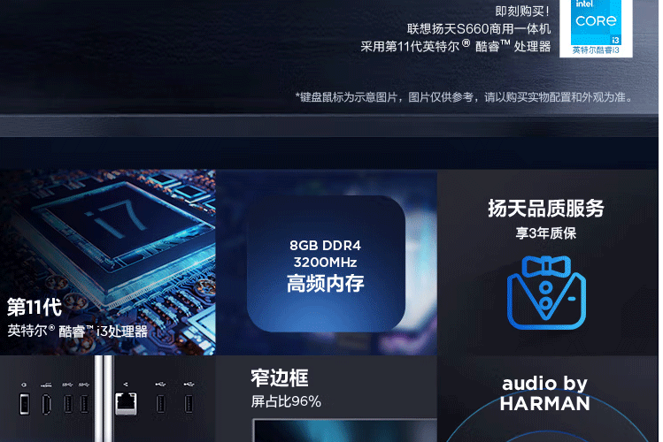 扬天 S660(i5-1135G7/16G/512GSSD/集成/Win10/23.8LED/黑色/无线键鼠)