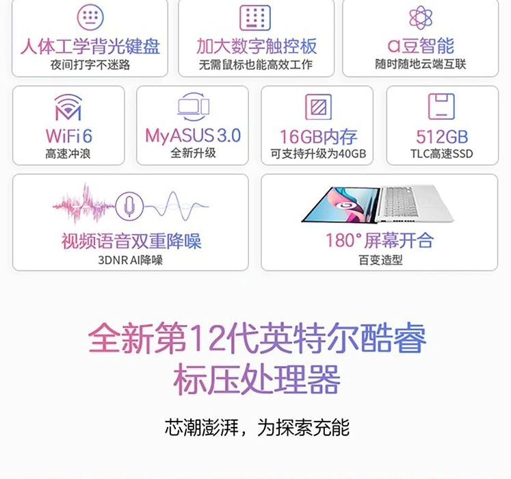 华硕 A豆14 2022( I5-12500/8G/512G/锐炬显卡/A豆专属/14寸IPS高分屏/极地幻白)