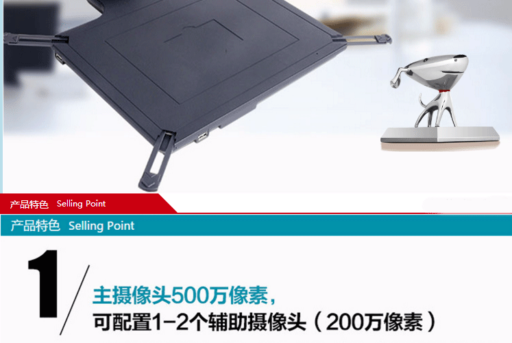 A3幅面,带硬质文稿台(可拉伸至A3)1000万主像素,可配置1-2个辅摄像头