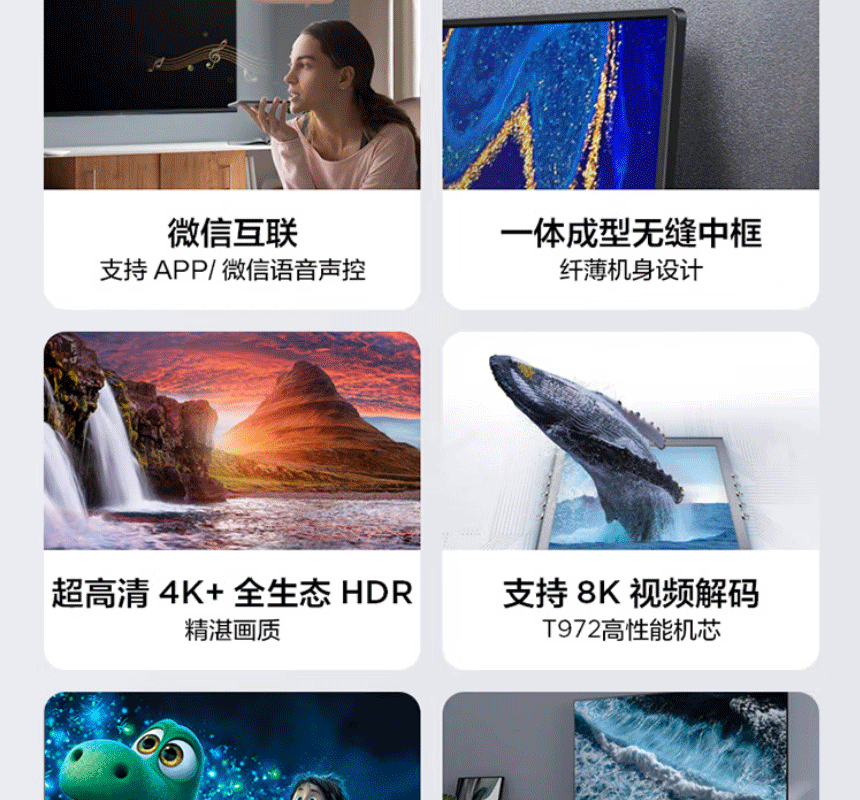 | 产品定位 | LED电视,智能电视,超高清电视,超薄电视,全面屏电视 |