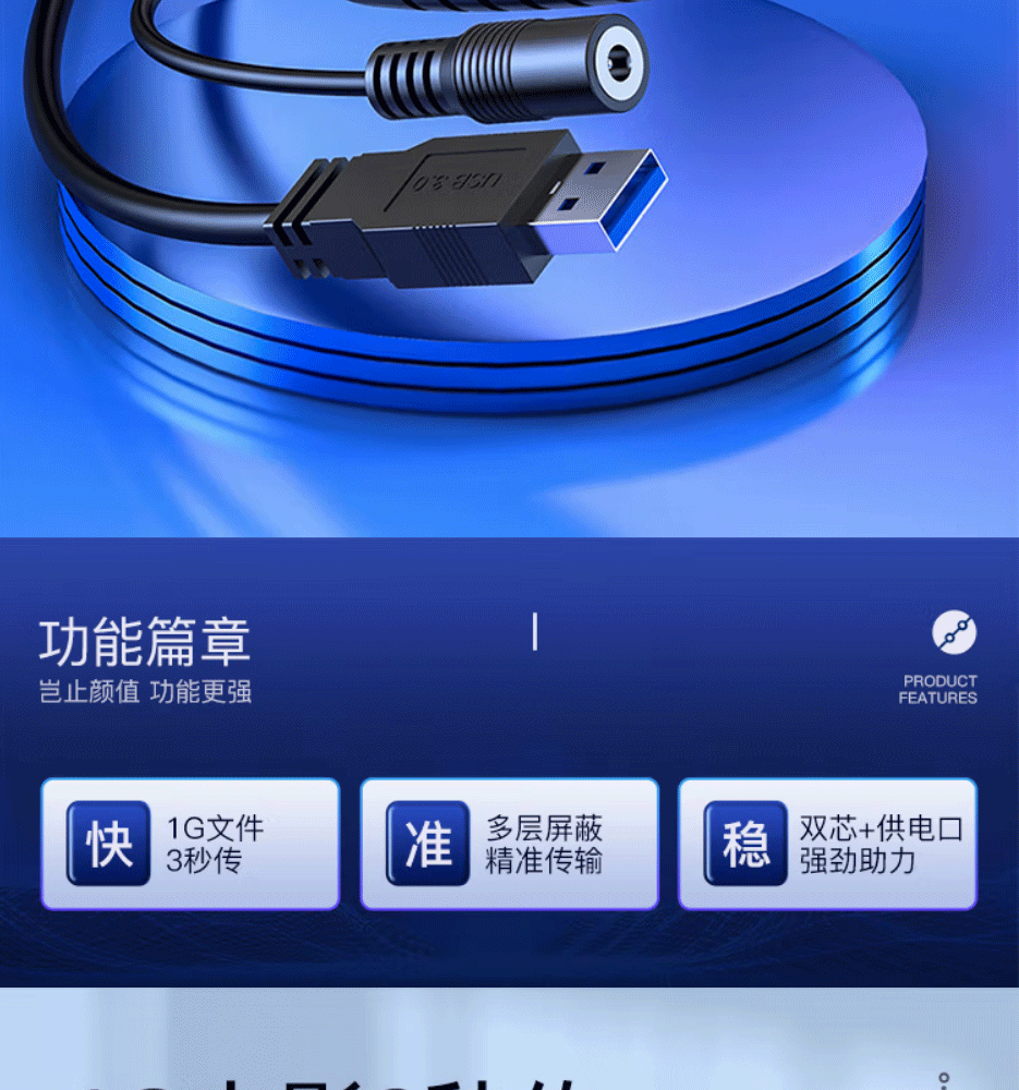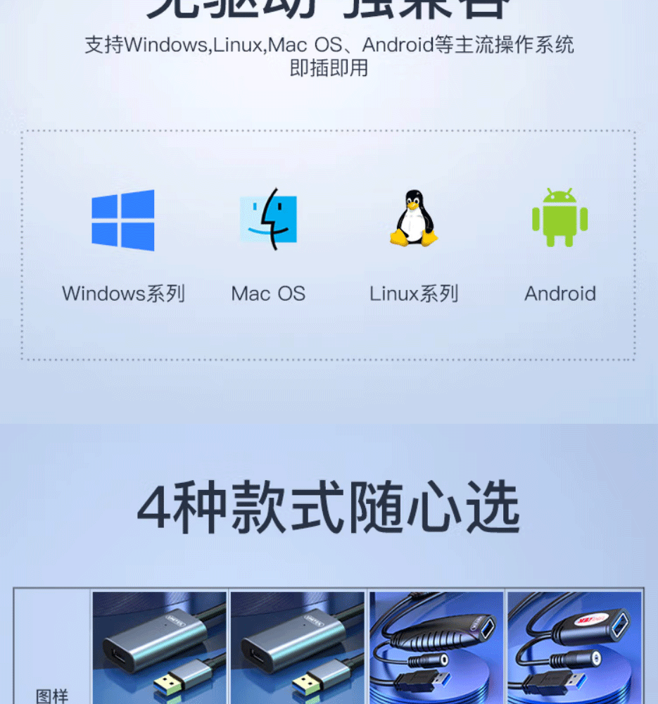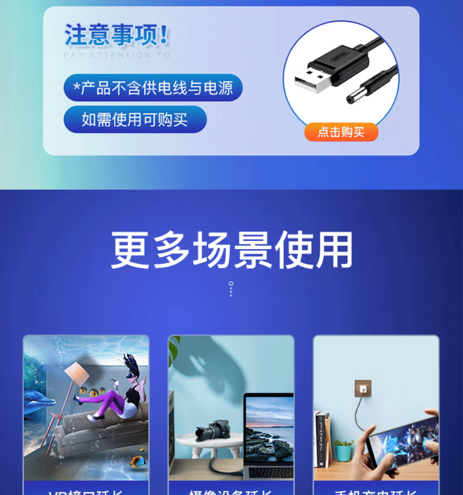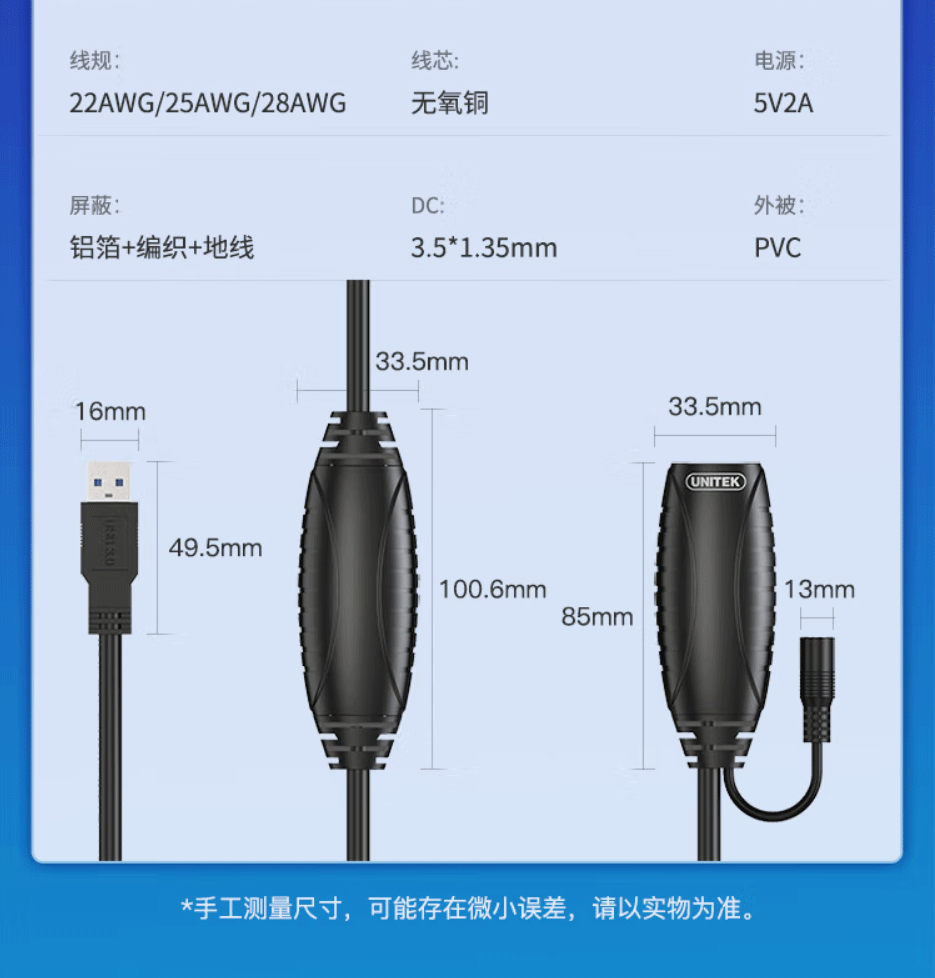 带DC供电口,支持大功率转接,多层屏蔽干扰,稳定传输,USB延长不失真