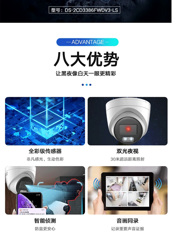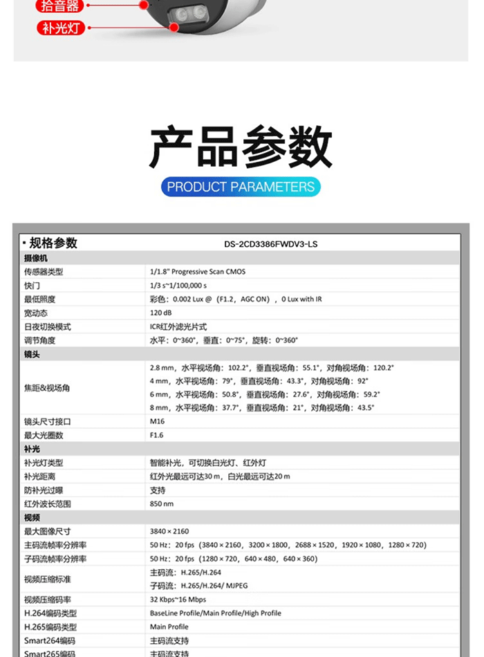 海康威视 DS-2CD3386FWDV3-LS(4mm)(国内标配) 800万智能警戒海螺型网络摄像机