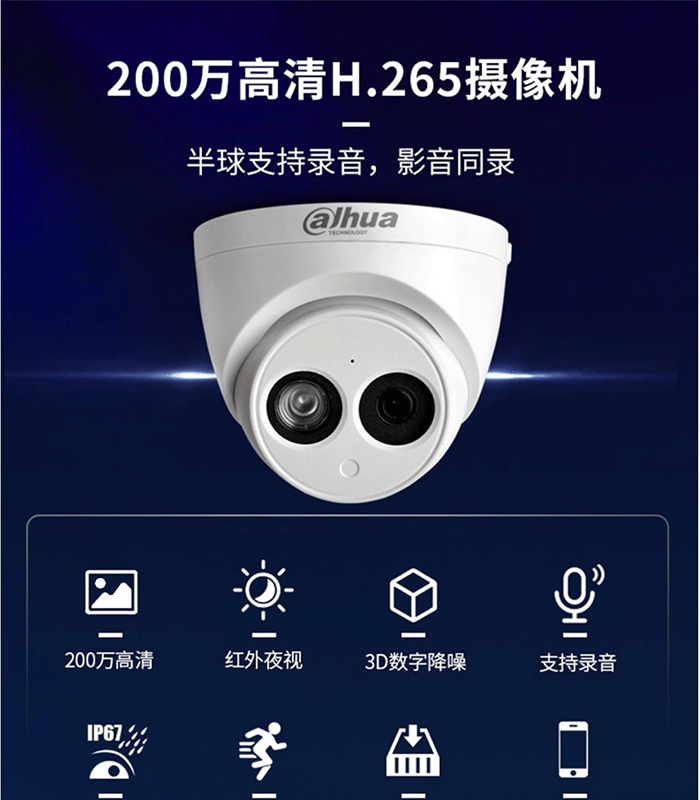 大华 DH-IPC-HDW1235C-A-V7 3.6mm 200万红外半球网络摄像机 经济款