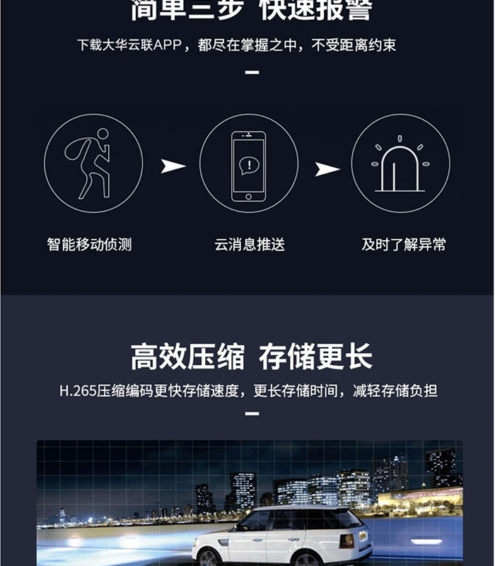 | 视频压缩标准 | H.265;H.264;H.264H;H.264B |