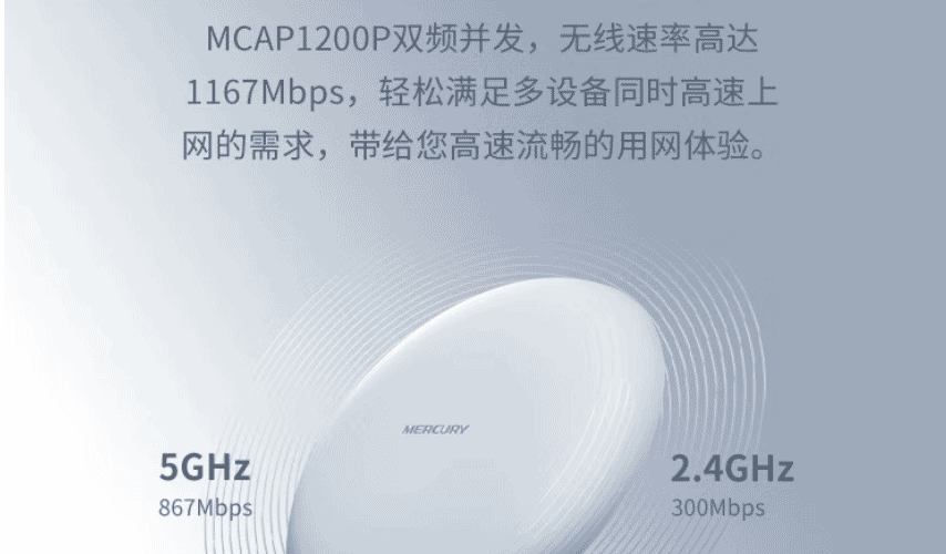 水星 MCAP1200P 1200M无线AP吸顶式 企业/酒店/别墅wifi接入点 PoE供电