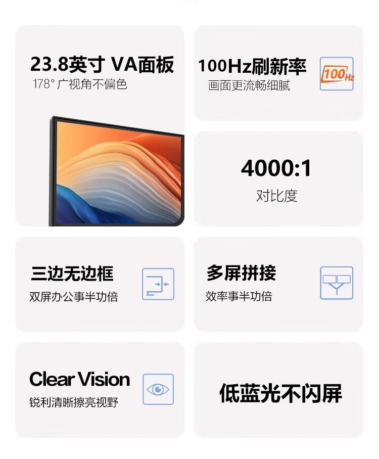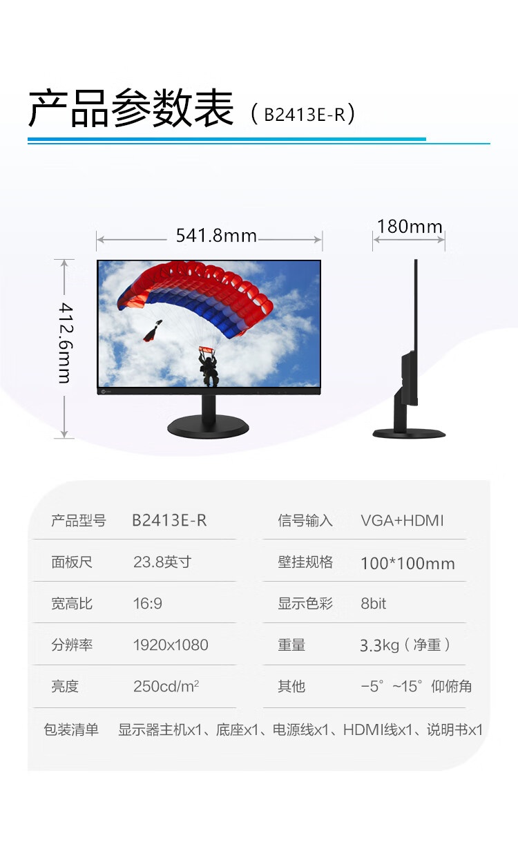 联想 来酷 B2413E 23.8 黑 VGA+HDMI